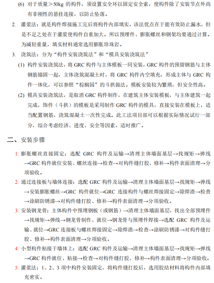 • GRC水泥構(gòu)件制作施工安裝流程
